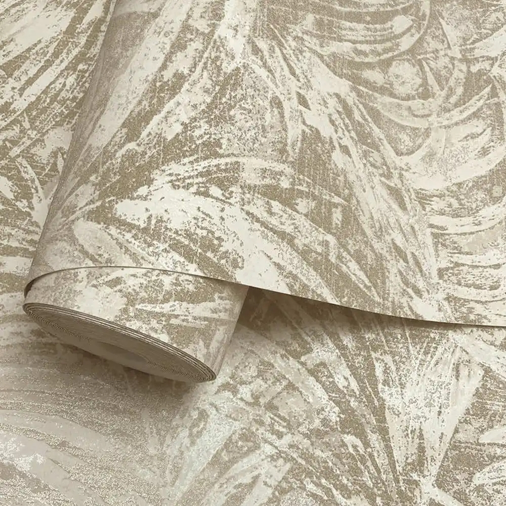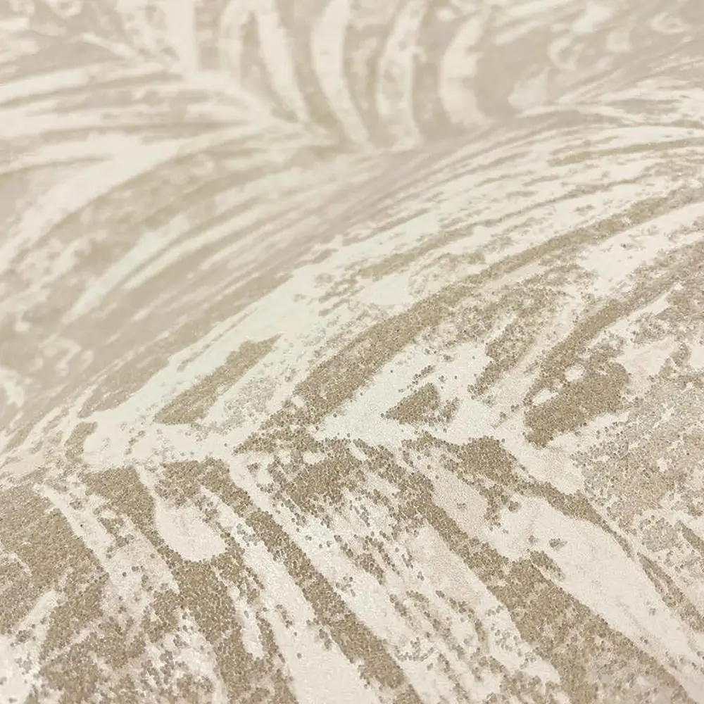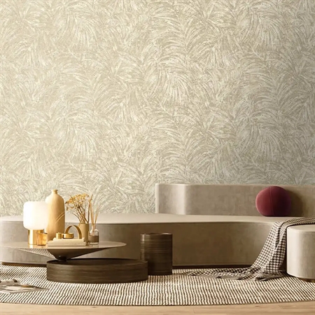 Et eksklusivt og dekorativt tapet med et digitalt trykt palmemotiv, hvor fine glasperler og strukturerede, let skinnende detaljer bryder bladenes former. Designet er inspireret af fjerpalmernes bevægelse i Saharas tilbagevendende sandstorme og skaber et levende, men elegant udtryk. De lyse ivorynuancer giver tapetet lethed og ro, mens de diskrete detaljer tilfører dybde og et luksuriøst præg.