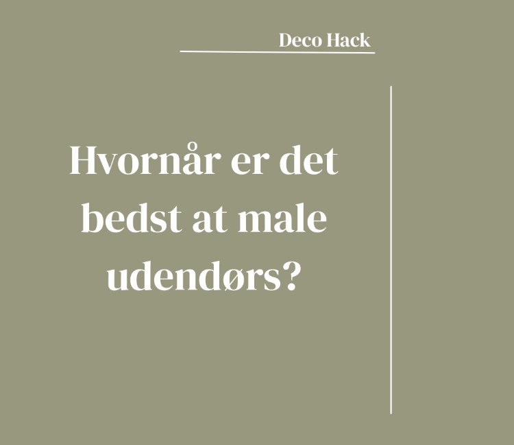 Blog Hvornår er det bedst at male udendørs? Timing er helt afgørende, når du maler udendørs og ønsker et flot og holdbart resultat. I dette hack får du overblikket over, hvornår vejret er bedst, og hvad du skal være opmærksom på, før du går i gang. Cathrine Bakdal Hansen - Tips & Tricks ekspert Senest opdateret29 april, 2026 Sådan får du det bedste malevejr: Det bedste tidspunkt at male ude er fra maj-september, men kig ALTID på vejret og ikke kalenderen. Temperaturen bør ligge mellem 10-25 grader Det skal have været tørt i ca. en uge før, og holde tørt et par dage efter Undgå direkte sol, da det får malingen til at tørre for hurtigt Hvis du skal male på træ: Tjek fugten i træet Brug en fugtmåler – træet må max. Have 15% fugt Mal helst senere på formiddagen, når luftfugtigheden er faldet Det sene forår og det tidligere efterår er ofte det bedste tidspunkt at male på Om efteråret kan du stadig male, men i færre timer på grund af høj luftfugtighed Huskeliste: Vask altid hus eller træværk før maling, så overfladen er fri for snavs Mal mellem maj-september Start kun, når vejret er stabilt og tørt Hold dig fra sol, regn og høj luftfugtighed Mål fugt i træet – max 15% Vil du have flere malertips, så skriv dig op til vores nyhedsbrev Relaterede artikler: