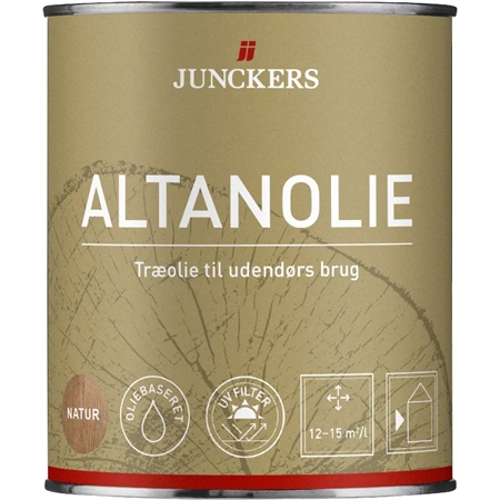 Junckers Altanolie er en transparent udendørs træolie til ubehandlede og tidligere olierede overflader af både hårdttræ og nåletræ. Den er særligt velegnet til træaltaner og andre mindre udendørs træoverflader, hvor der ønskes en slidstærk og vandafvisende overflade