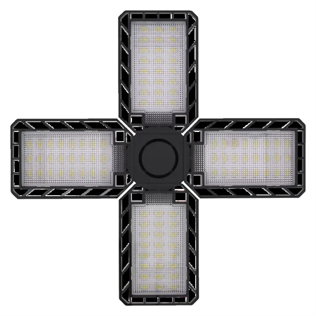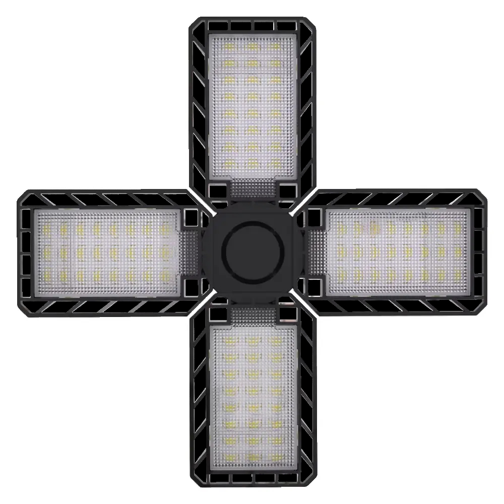 Lampen leverer omkring 2.400 lumen i en neutral hvid farvetemperatur på 4.000 K, som giver et klart og behageligt arbejdslys, hvor farver og detaljer står tydeligt. De justerbare blade kan vinkles efter behov, så du kan styre lyset ud i rummet eller ned mod gulvet alt efter opgave.