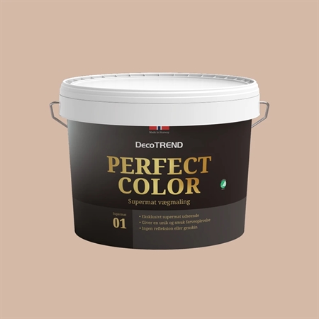 Vores smukkeste maling nogensinde er supermat, med et eksklusivt udseende. Perfect Colors bløde, supermatte finish giver en unik farveoplevelse. Den supermatte overflade, helt uden reflektion, fremhæver farverne på en helt speciel måde – og farven vil opleves både blødere og mere dæmpet.