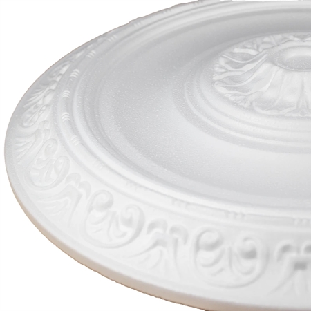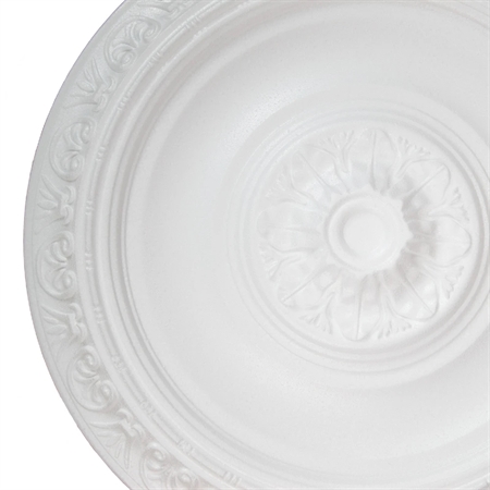 En loftroset kan have en fantastisk visuel indvirkning i et lokale. Denne model fra Marbet Design måler Ø40 cm og har et detaljeret ornamenteret mønster langs kanten, og et elegant bladmotiv i midten. En loftroset ser pragtfuld ud over en loftslampe, som midtpunkt i loftet eller som et dekorativt vægelement. Loftrosetten er fremstillet i hvid letvægtspolystyren. Du får brug for