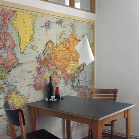 Unikt verdenskort som tapet – med autentisk antik-look og historisk charme. Designet i samarbejde med Stanfords, en af verdens ældste kortforretninger, og trykt på 5 baner non-woven tapet.