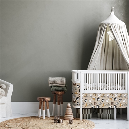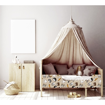 Den selvklæbende folie kan bruges på alt fra møbler og hylder til vinduer og andre overflader og er let at påføre og tage af igen. Folien fås her i modellen Forest Animals, der er et sødt grafisk print med små dyr fra skoven på en fin, beige baggrund.