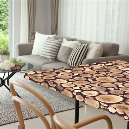 Den selvklæbende folie kan bruges på alt fra møbler og hylder til vinduer og andre overflader og er let at påføre og tage af igen. Folien fås her i modellen Logs, der har et flot, dekorativt motiv af stablede brændestykker.