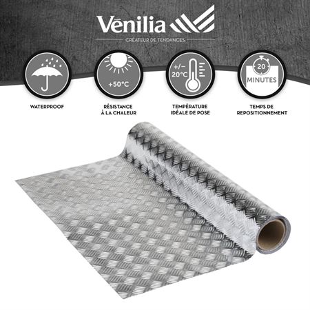 Den selvklæbende folie kan bruges på alt fra møbler og hylder til vinduer og andre overflader og er let at påføre og tage af igen. Folien fås her i farven Riffle Glossy, der har et metallisk, riflet look.