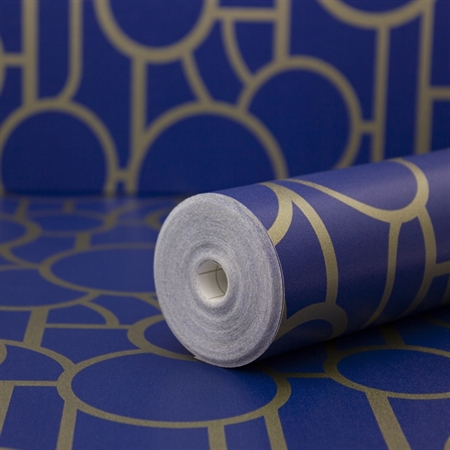 Den selvklæbende folie kan bruges på alt fra møbler og hylder til vinduer og andre overflader og er let at påføre og tage af igen. Folien fås her i modellen Tiffany, der har et elegant, grafisk mønster i flot guld farve.