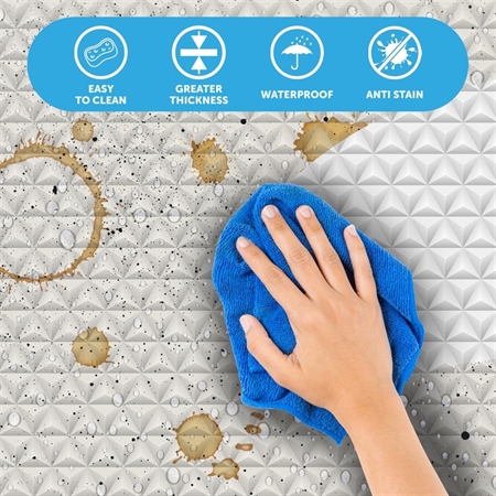 Den selvklæbende folie kan bruges på alt fra møbler og hylder til vinduer og andre overflader og er let at påføre og tage af igen. Folien fås her i modellen Triangels, der har et flot grafisk 3D-trekantsmønster i en hvid nuance.