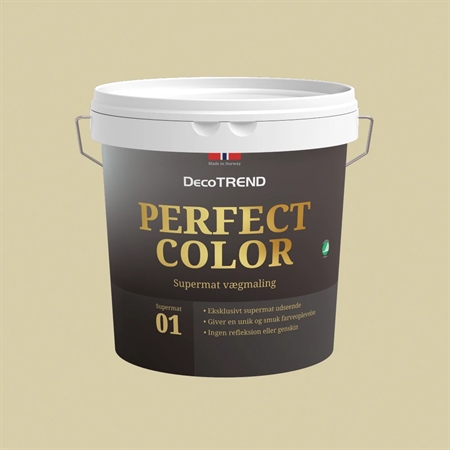 Vores smukkeste maling nogensinde er supermat, med et eksklusivt udseende. Perfect Colors bløde, supermatte finish giver en unik farveoplevelse. Den supermatte overflade, helt uden reflektion, fremhæver farverne på en helt speciel måde – og farven vil opleves både blødere og mere dæmpet.