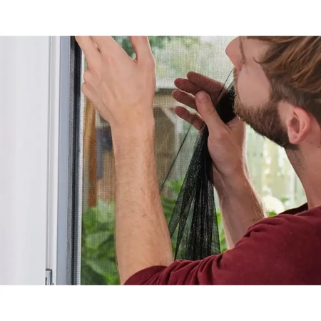 3. Monter insektnettet: Pres nettet fast på tapen med den medfølgende børste for et solidt og flot resultat.
