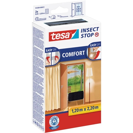 Med Tesa insektnet til døre kan du nemt holde myg og insekter ude, mens du stadig kan lufte ud i dit hjem. Nettet er en praktisk løsning til døre i stuer, soveværelser og køkkener og monteres nemt med selvklæbende burretape direkte på dørrammen. Når det ikke længere skal bruges, kan det fjernes uden at efterlade klæberester eller mærker.