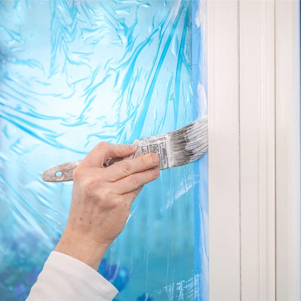 Folien er fremstillet i slidstærk PE og er udviklet specielt til at beskytte glas, vinduer, vinduesrammer, spejle og andre jævne overflader mod spildt maling, beton, støv, snavs og ridser. Den klæber sikkert under hele arbejdet og sikrer, at overfladerne forbliver rene og pæne.